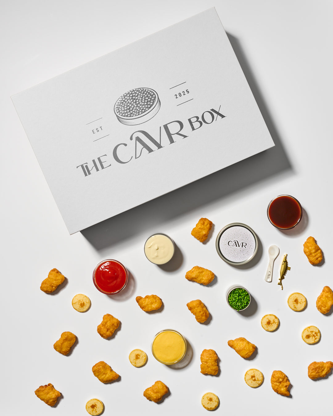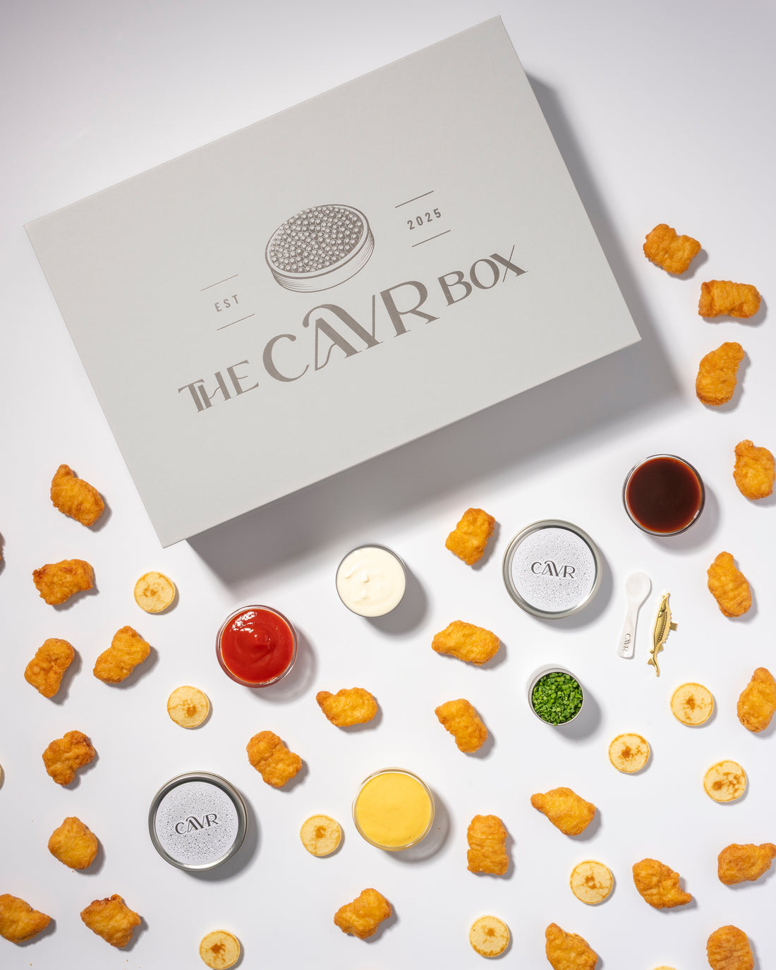 Experience luxury on the move with the CAVR To Go Box — a curated selection of the world’s finest caviar paired with elegant accompaniments for an unforgettable tasting experience. Each box includes hand-selected caviar, a 24K gold-plated tin opener, a mother-of-pearl serving spoon, and freshly handmade blinis with crème fraîche and chives. Complement your indulgence with your choice of lobster rolls, chicken nuggets, or bagels, creating a perfect balance of sophistication and playfulness. Available in signature Gold and Silver varieties, each box is designed to delight from intimate gatherings to grand celebrations.